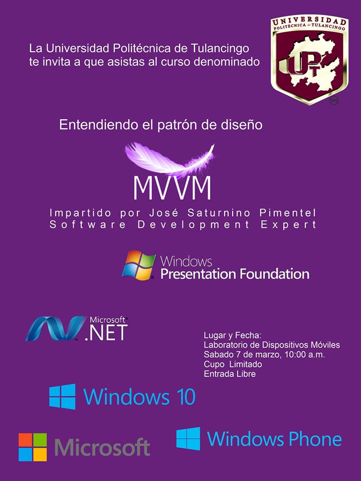 El 7 de marzo de 2015 regresamos a la UPT ahora para trabajar con el patrón MVVM para Windows Phone además vimos los conocimientos necesarios antes de implementar este patrón, gracias UPT por recibirme y siempre es un gusto conocer compañeros tan entusiastas.